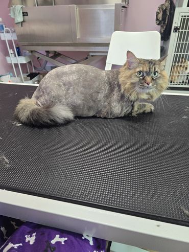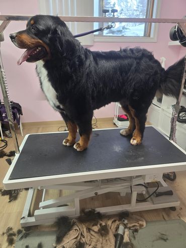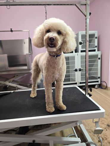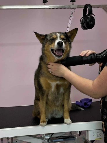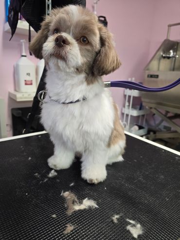 Includes bath with high quality shampoo + conditioner, blow dry, brush out, paw pad shaving, nail clipping and dremmeling (if tolerated), ear cleaning and haircut