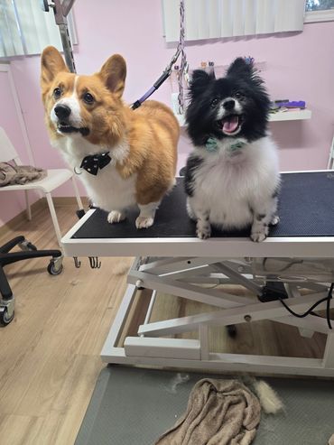 Find us on Facebook and Instagram, just search Alex's Pet Parlour and look for the pink logo with the corgi!